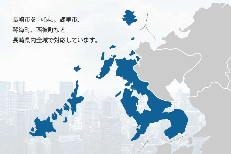 長崎県長崎市を中心に諫早市、琴海町、西彼町など長崎県内全域で対応しています。