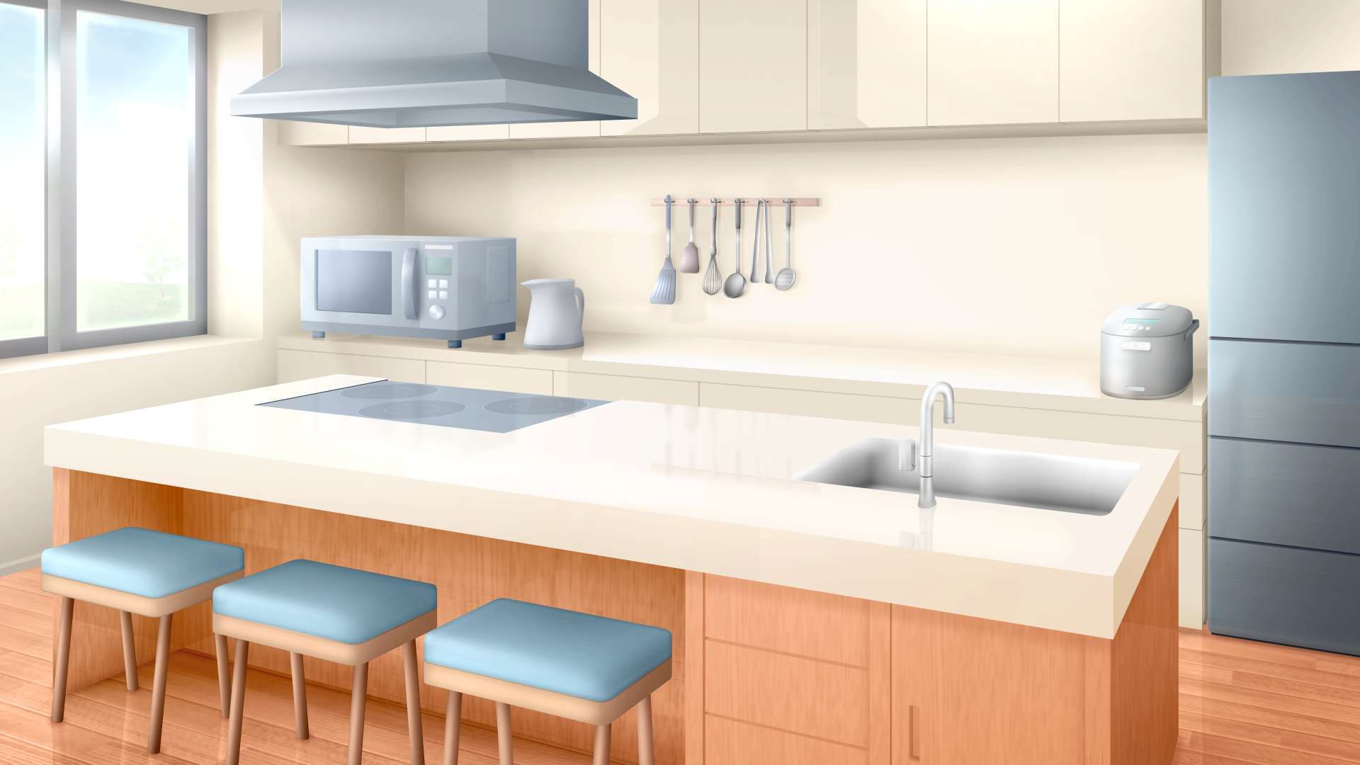 キッチンの調理台(シンクやコンロを含む作業スペース)が壁から離れて独立(=島のように設置)しているキッチンのことです。そのため、周囲をぐるりと回れる動線がとれるのが特徴です。また、開放感があり、リビングやダイニングと一体感を出しやすいです。